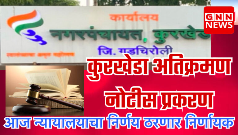कुरखेडा, १६ जून : कुरखेडा नगरपंचायतीच्या सेवा रस्त्यावरील अतिक्रमणासंदर्भातील बहुचर्चित प्रकरणात आज नागरी न्यायालयात अंतिम सुनावणी होणार असून, नगरपंचायत मुख्याधिकाऱ्यांनी...