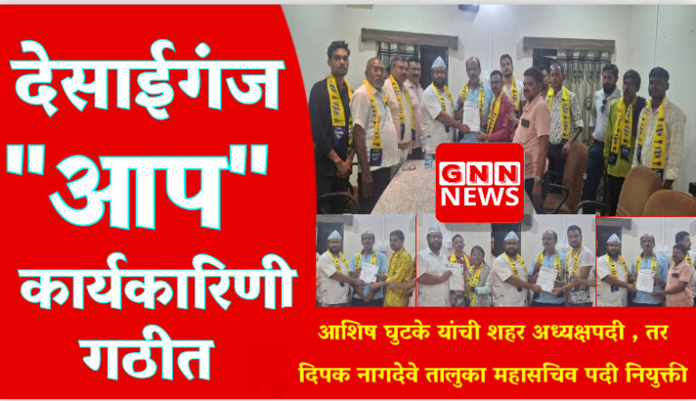 देसाईगंज, गडचिरोली (२४ जुलै): गडचिरोली जिल्ह्यातील देसाईगंज (वडसा) नगर परिषदेत आम आदमी पार्टीच्या (आप) शहर कार्यकारिणीची स्थापना मोठ्या उत्साहात पार...