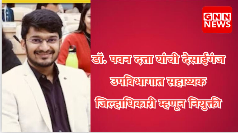 देसाईगंज वडसा, ३ जुलै : भारतीय प्रशासकीय सेवेतील (IAS) २०२३ बॅचचे अधिकारी डॉ. जी.व्ही.एस. पवन दत्ता यांची अलीकडेच महाराष्ट्रातील नांदेड...